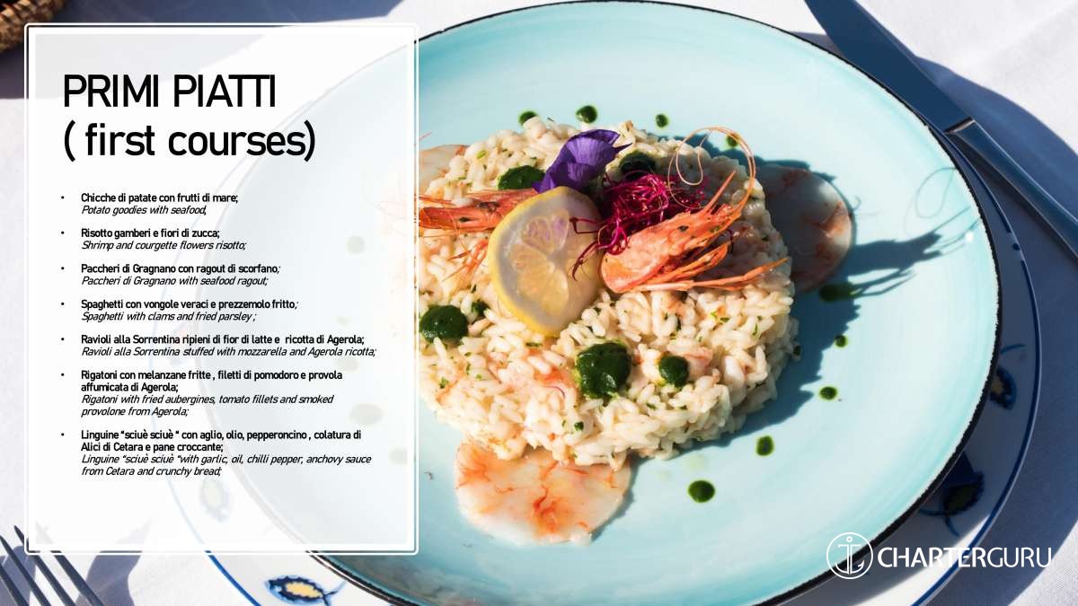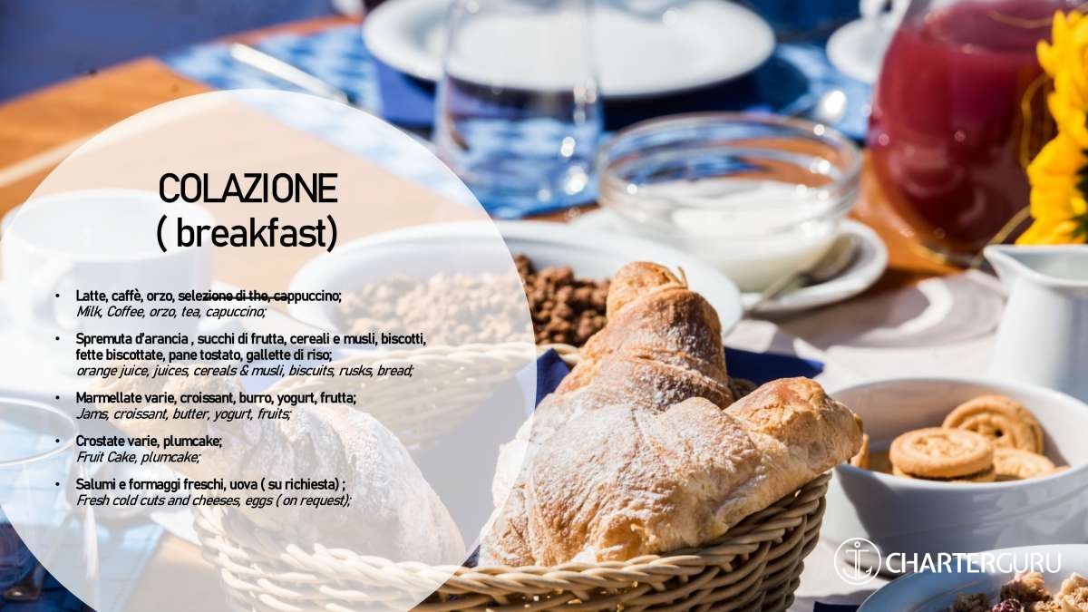 • Crew service (Capitan, Chef, Deckhand, Hostess);