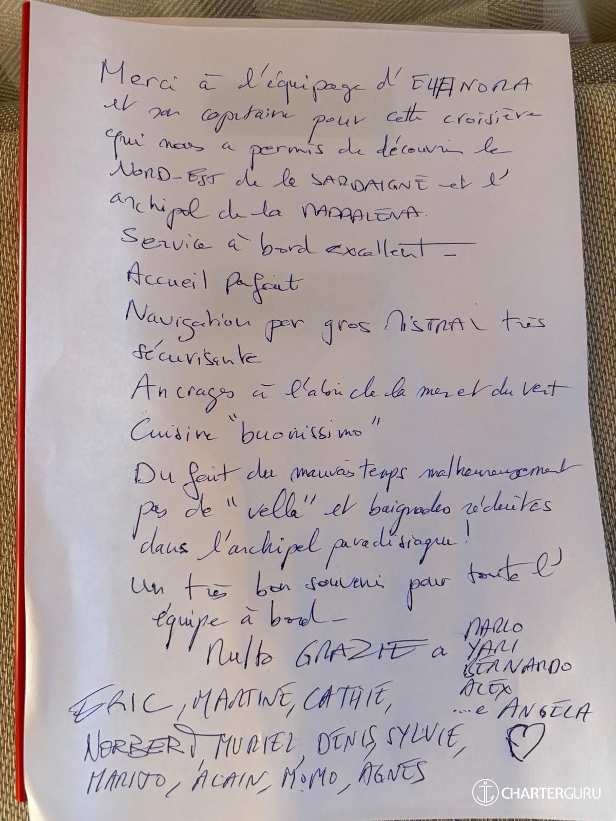 SEASON 2026 Main Base Sardinia Italy ( possibilities around Western Mediterranean sea) Others base are available in Sicily and Amalfi coast Check in starting from 6.30 pm – check out before 9 AM - Low season euro 33.000 pw plus vat - High season euro 39.900 pw plus vat (1.07 – 31.08) The above prices include: • Insurance of the yacht, wages and food for the crew (5 persons), service on board • linen, towels, sun towels(bi weekly) and daily cleaning of the cabins • Water equipment on board (snorkeling, kayak, etc,) Mandatory Extras: Food Options - Half Board: Euros 550,00 per pax (first night Dinner and Breakfast and Lunch each day). - Extra Dinner: 80 euro - Children Discounts: up to 0-3 years free of charge. Drink Options: - "Non alcoholic” package: Euros 160,00 per pax/week (soft drinks, water, coffee, tea ) - “Local” package: Euros 275,00 per pax/week (local beers land wines, water,soft drinks, coffee, tea, and local alcoholic drinks) - "Drinks from yacht’s bar": Cocktails are per use purchase aboard. Corkage fee for beverages supplied by clients: Euros 950,00 per week/booking A.P.A.: A.P.A. 30 - 35 % of Charter Fee A.P.A. (Advance Provisioning Allowance) To cover following costs, but not limited to: fuel for the main engine and generators; fuel for cruising; fuel for tender and water sports equipment; berthing dues and other harbor charges including pilots ’fees, local taxes, divers’ fees, customs formalities, charges for waste disposal, charges for water and electricity taken from shore; shipping agents’ fees where applicable; Charter Party personal laundry; Charter Party communications and internet use; hire or purchase costs of any special equipment placed on board at the Charterer’s request, shoreside transport and excursions, national park entrances and other costs for services requested by Charter Party during the charter and all other costs not specified as included. A.P.A is paid by the Client in addition to the charter fee for all relevant costs for the vessel that are not included in the charter fee. If A.P.A does not cover complete costs, the Client will pay exceeding the amount on board in cash. If costs made on charter are less than the amount is given as A.P.A, the amount that was not spent will be returned to the Client at the end of the voyage. A.P.A does not include tips for the crew - Port and Tourist Taxes From A.P.A. Fuel consumption: - 90 liter per hour for use of the main engines - 10 liter per hour for use of Generator Price as per daily fuel prices. Non-Mandatory Extras: Tips: 10- 15% from charter price is recommended. Additional Motorized Water Sports: From A.P.A. ( around euro 120 per hour ) Other Options on request: Land transfers, fishing licenses, guided tours, excursions, restaurants, bike rentals, car rentals. Payments: 50% of charter fee on confirmation of the reservation Remaining 50% of charter fee 4 weeks prior to departure. Food and drink options plus APA 4 week prior to departure Suggested Airport: Olbia, Alghero, CagliariWhat is the cabin arrangement of Elianora?