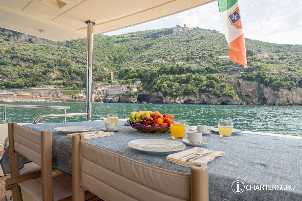 Thanks to a comfortable staircase, guests can have access to the sundeck, that features additional sun-pads, along with an al-fresco area where guests can enjoy a cocktail and snacks.