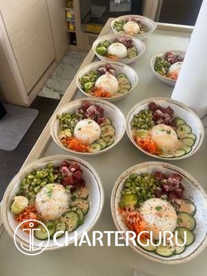 Reeve is an experienced yacht chef with a passion for cooking and sailing. She began her career as a sous chef and transitioned to yacht cuisine five years ago, blending her culinary expertise with her love for the ocean. Learning to sail small dinghies about a decade ago in France made her realize she feels most at home on the water. With a keen artistic eye and a background in photography from university, Reeve truly appreciates the beauty of sailing through picturesque islands and crystal blue waters. She thrives on the ever-changing conditions and challenges of cooking at sea, which enhances her love for crafting exceptional meals. To further refine her skills for life onboard, Reeve completed a specialized yacht chef cooking course in the UK. This training helped her master the unique demands of galley kitchens and provisioning in remote locations. Her food is a reflection of her creativity, adaptability, and deep connection to the sea.