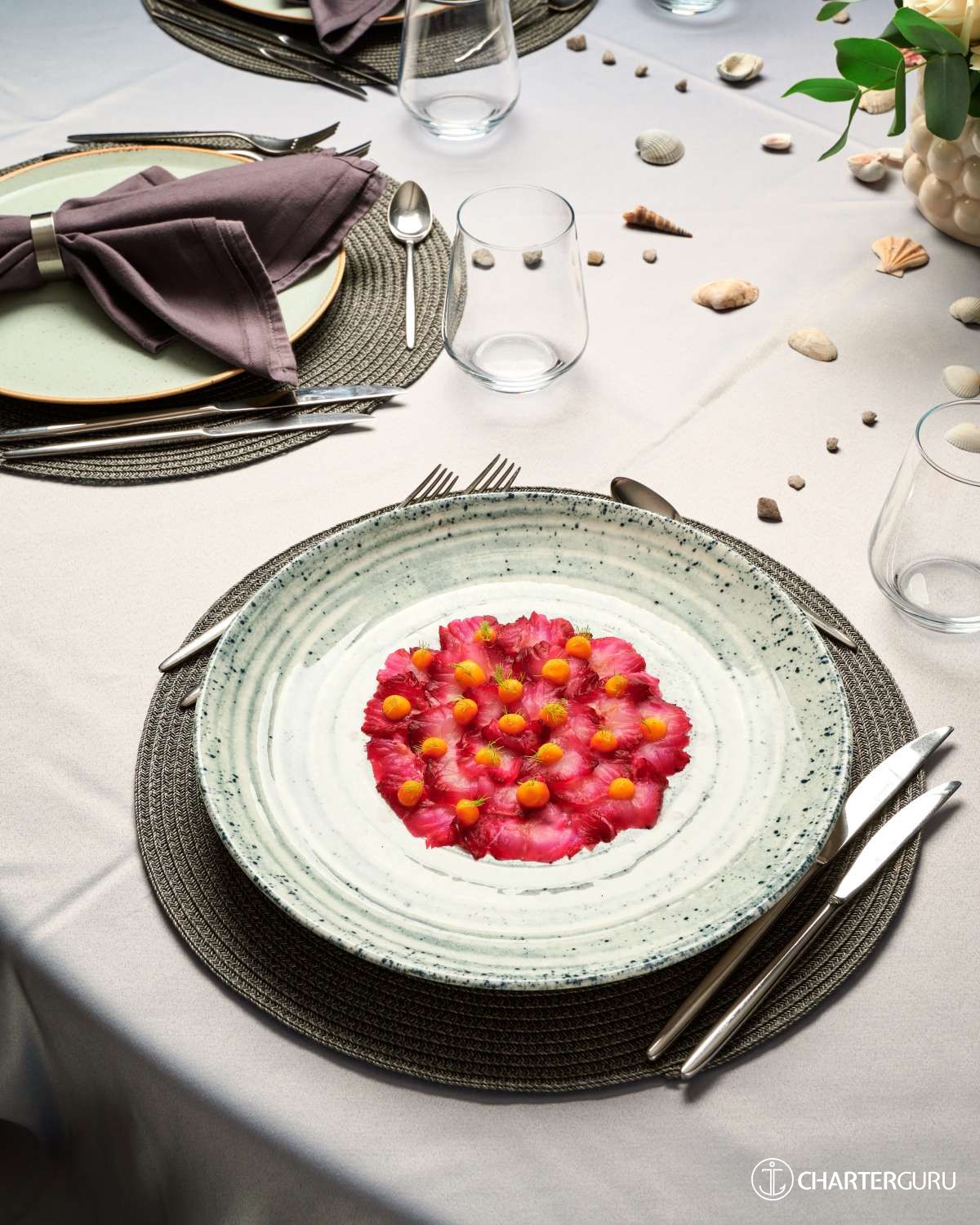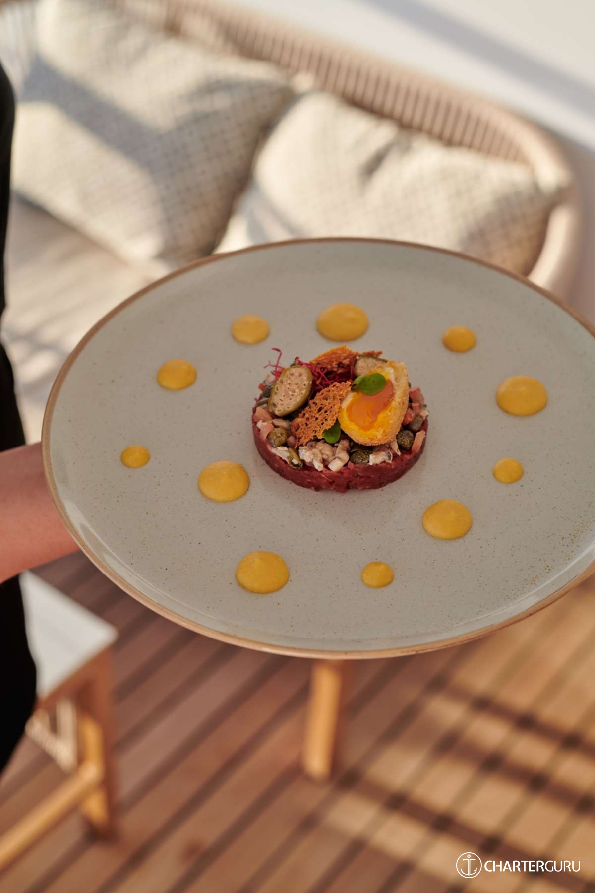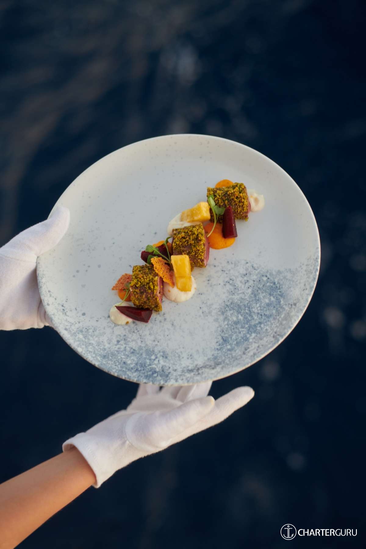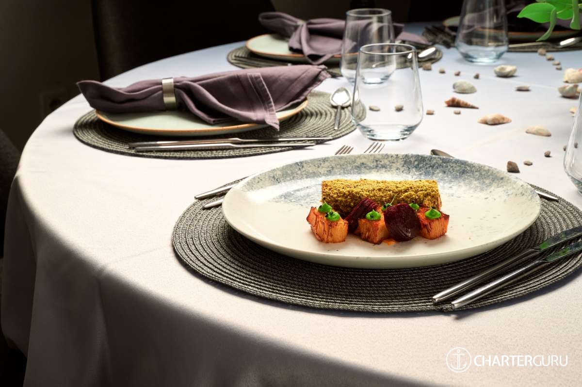 Hosting up to 46 guests, the yacht charter consists of 20 cabins, cozy interiors and outside spaces, managed by a skilled 9 -crew team.