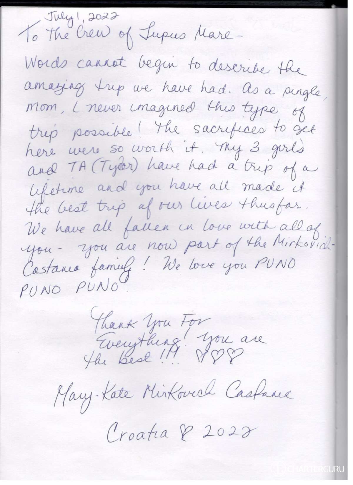 by the Lupus Mare amazing crew, to the wonderful chefs,