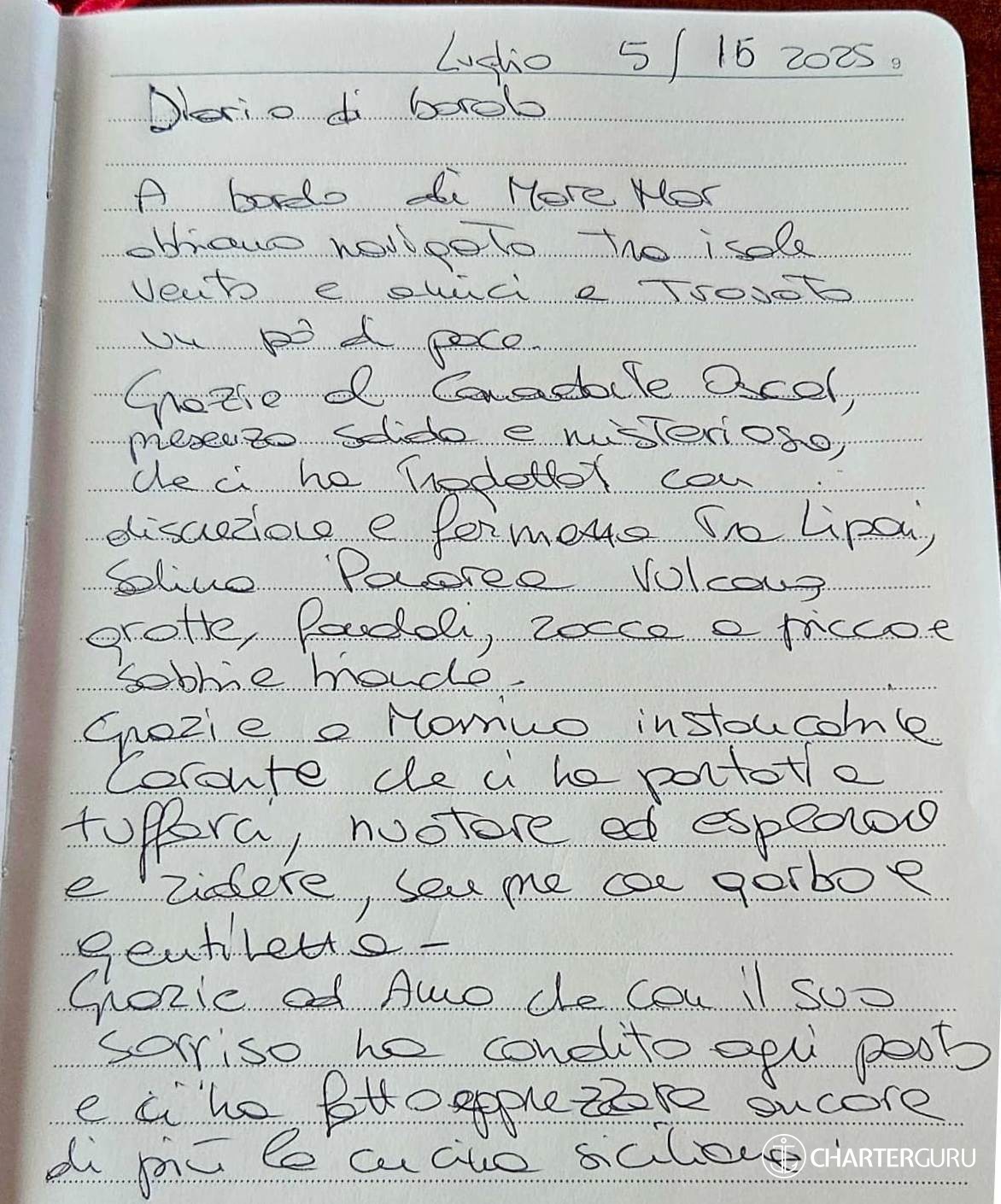La nave Mar & Mar è un gioiello con fascino, il capitano Oscar e l’equipaggio molto efficienti e cordiali. La cuoca Giulia ci ha deliziato con pasti molto variegati, inclusa la gestione dell’ospite vegetariano.