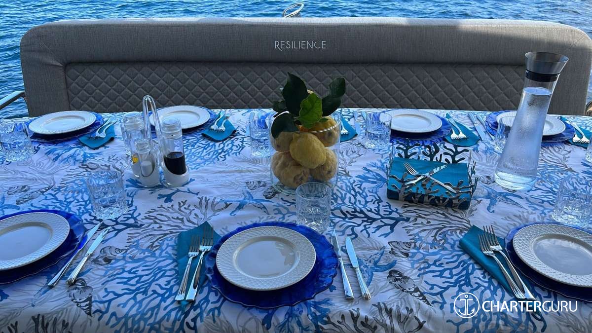 For a motor yacht like Resilience, the expected APA is 25% to 40% of the charter price (€7,000 - €11,200), making the charter cost €35,000 to €39,200. Exact amount will be confirmed after inquiry.