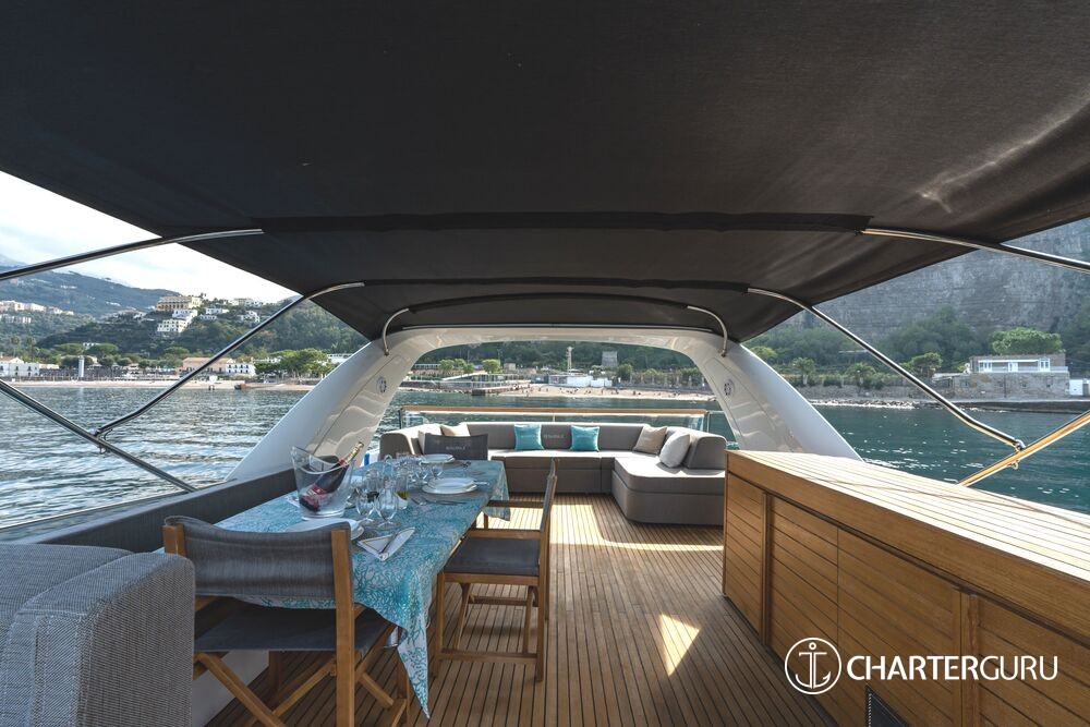 Guests will find several lounging areas aboard, including the bright, welcoming salon with a separate dining zone for up to 8 guests where relaxing with family and friends.