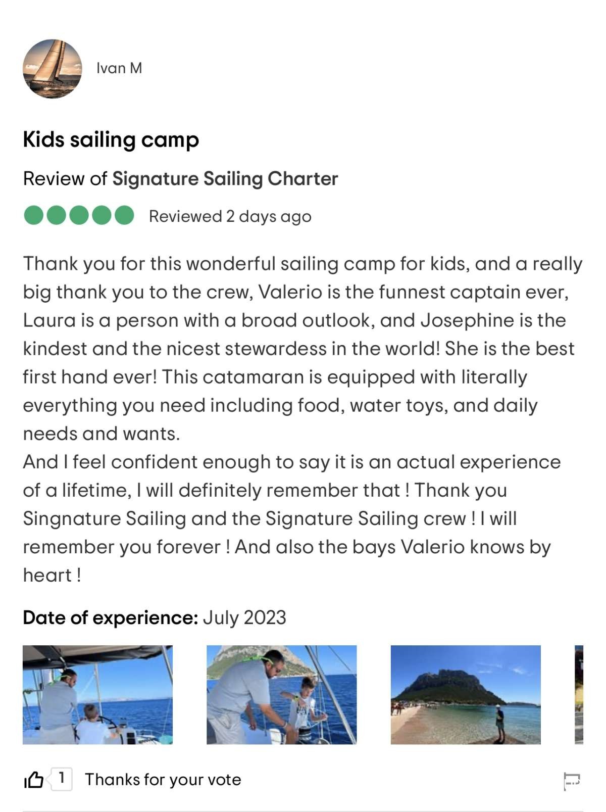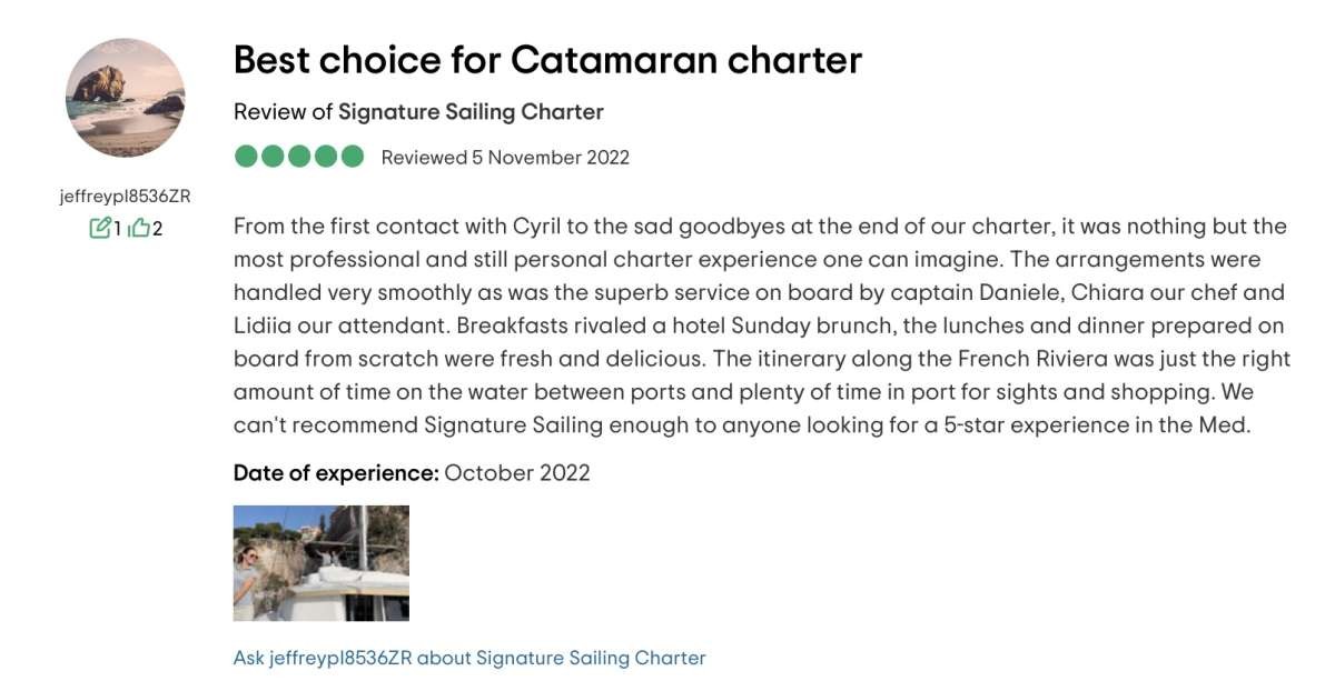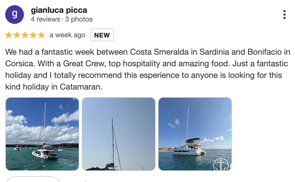 We had a fantastic week between Costa Smeralda in Sardinia and Bonifacio in Corsica. With a Great Crew, top hospitality and amazing food. Just a fantastic holiday and I totally recommend this experience to anyone is looking for this kind holiday in Catamaran.