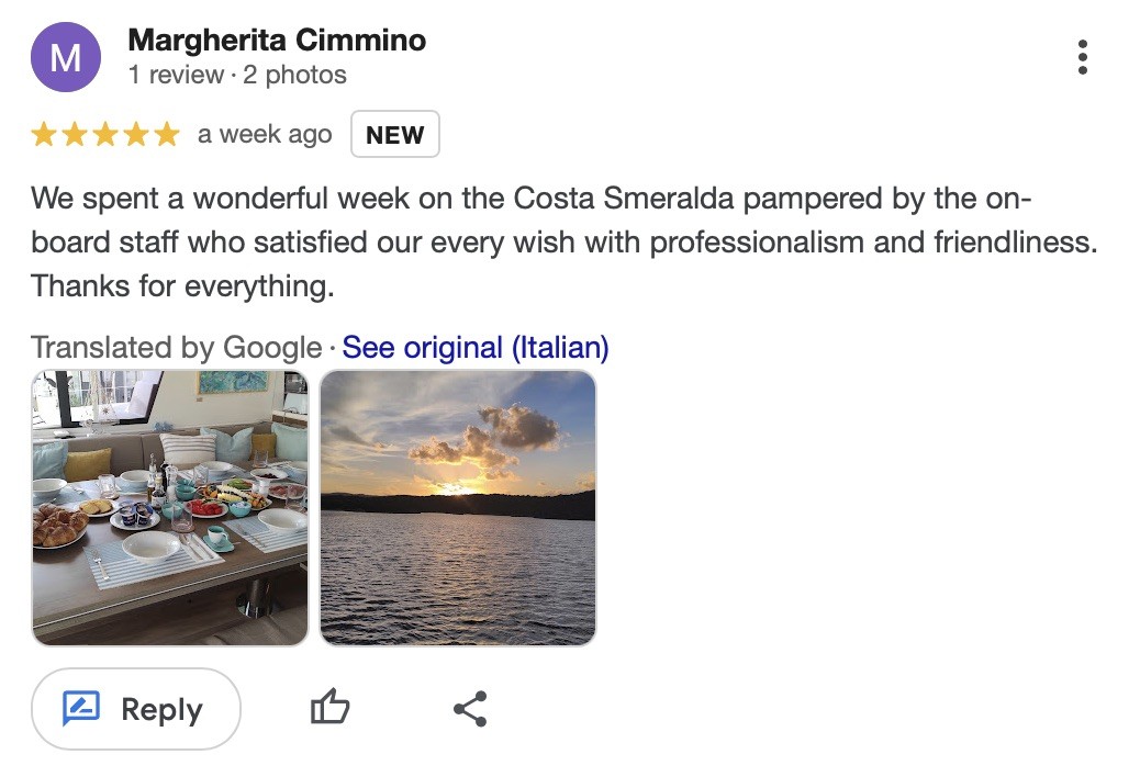 We spent a wonderful week on the Costa Smeralda pampered by the on-board staff who satisfied our every wish with professionalism and friendliness. Thanks for everything.